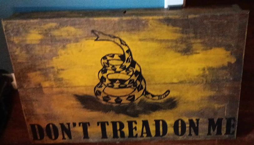 Don't Tread On Me Secure Decorative Wall-Mounted Gun Cabinet, donated by a Chapter Member, valued at $125.00.